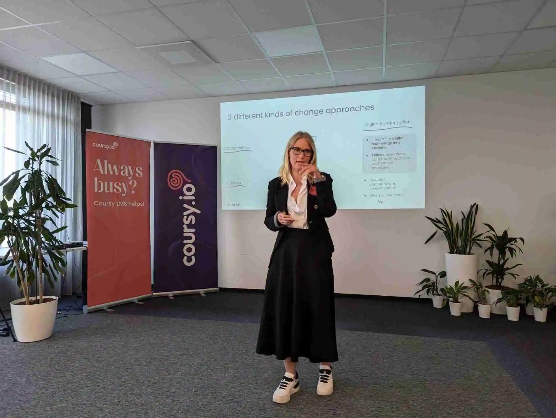 Renginį pradėjo BTA mokymosi ir tobulėjimo specialistė Ildze Pravornė, kuri pasidalino įkvepiančia kelione, kaip BTA sėkmingai įdiegė Coursy mokymosi valdymo sistemą (LMS). Ildzė apibūdino iššūkius, su kuriais jie susidūrė modernizuodami mokymo procesus ir kaip Coursy padėjo supaprastinti BTA darbuotojų el. mokymosi pastangas. Jos pristatymas pabrėžė praktinę Coursy naudojimo naudą ir pateikė vertingų įžvalgų įmonėms, norinčioms tobulinti savo vidines mokymo programas.