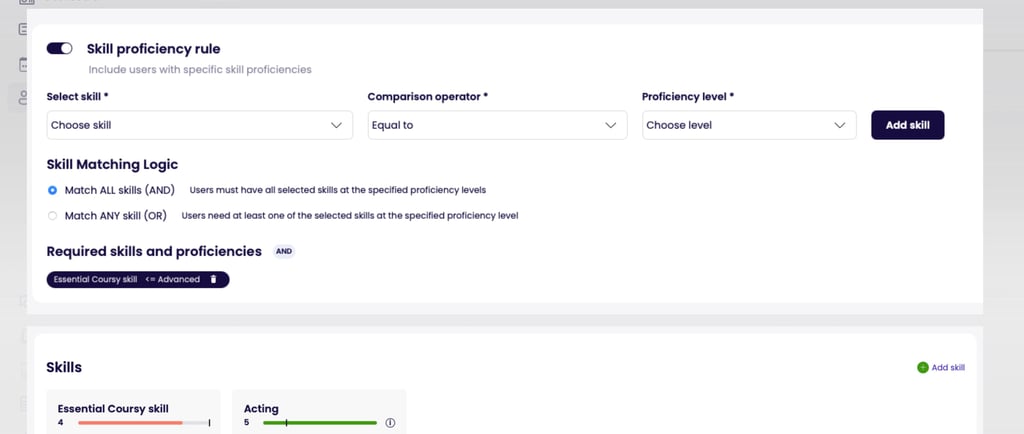 Pirmoji įgūdžių valdymo sprendimo (Skills management) fazė jau pristatyta — tai leidžia pereiti nuo paprasto kursų užbaigimo prie matavimo pagrįsto, struktūruoto augimo. Šis atnaujinimas padeda HR ir mokymų (L&D) komandoms aiškiau suprasti, kur šiuo metu yra darbuotojai ir kas yra reikalinga tolesniam jų augimui.
