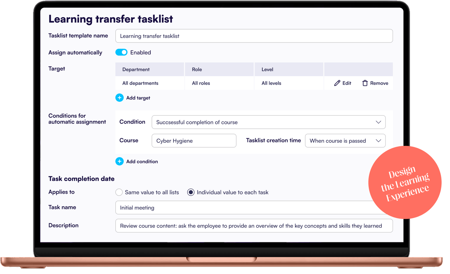 Naudotojai gali lengvai dalyvauti privalomuose ir pasirenkamuose mokymuose besimokančiojo pusėje. Intuityvi sąsaja užtikrina, kad jie galėtų sutelkti dėmesį į įgūdžių tobulinimą, nesvarbu, kur jie yra ar kokį įrenginį naudoja.