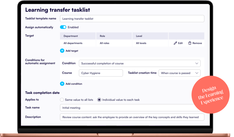 Naudotojai gali lengvai dalyvauti privalomuose ir pasirenkamuose mokymuose besimokančiojo pusėje. Intuityvi sąsaja užtikrina, kad jie galėtų sutelkti dėmesį į įgūdžių tobulinimą, nesvarbu, kur jie yra ar kokį įrenginį naudoja.